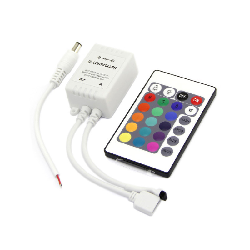 Контролер Mini на 12А-IR має 4 динамічних режимів і 16 статичних режимів. Є можливість керування яскравістю стрічки в статичних режимах та швидкістю мерехтіння в динамічних режимах. Також цей контролер дає можливість точно регулювати відтінок кольору світіння і зберігати його в пам'яті контролера.