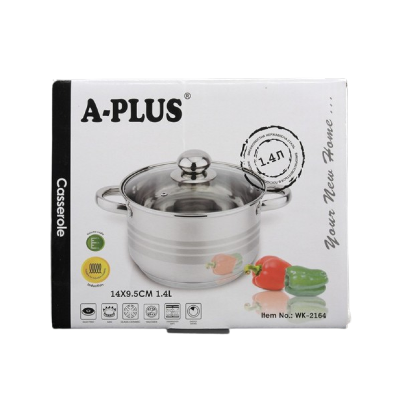 Каструля з нержавіючої сталі із капсульним дном. У комплекті йде скляна кришка з отвором для випуску пари. Ручки ергономічної форми виконані зі сталі, кріплення – клепкове (ручки не нагріваються). Стильний оригінальний дизайн, простота у догляді та використанні, екологічність та довговічність – ось відмінні риси даного посуду. Каструля має п'ятишарове дно.