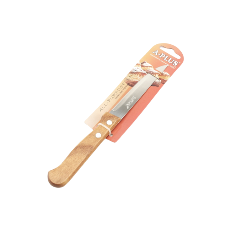 Кухонний ніж необхідний у кожному будинку. Навіть якщо Ви не готуєте самі, нарізати і почистити продукти без ножа неможливо. Пропонуємо ніж із нержавіючої сталі з дерев'яною ручкою, який зробить процес приготування їжі набагато легшим та приємнішим.Довжина леза – 10,5 см.