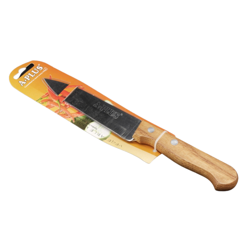 Кухонний ніж необхідний у кожному будинку. Навіть якщо Ви не готуєте самі, нарізати і почистити продукти без ножа неможливо. Пропонуємо ніж із нержавіючої сталі з дерев'яною ручкою, який зробить процес приготування їжі набагато легшим та приємнішим.Довжина леза – 13 см.