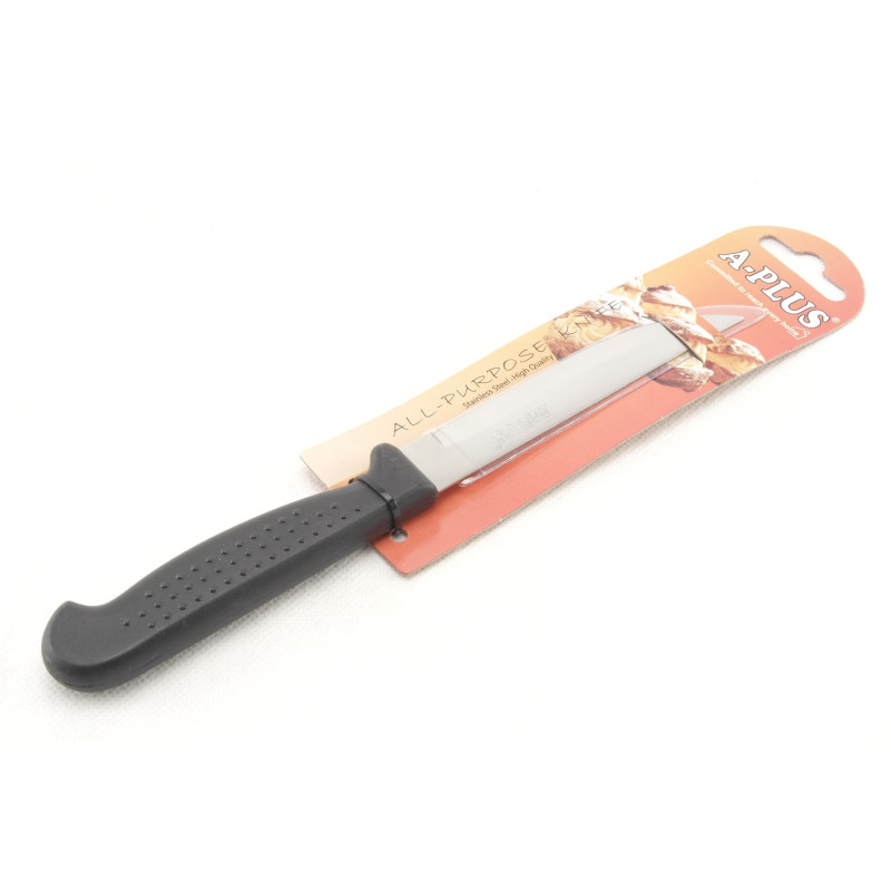 Кухонний ніж необхідний у кожному будинку. Навіть якщо Ви не готуєте самі, нарізати і почистити продукти без ножа неможливо. Пропонуємо ніж із нержавіючої сталі з дерев'яною ручкою, який зробить процес приготування їжі набагато легшим та приємнішим.Довжина леза – 10,5 см.