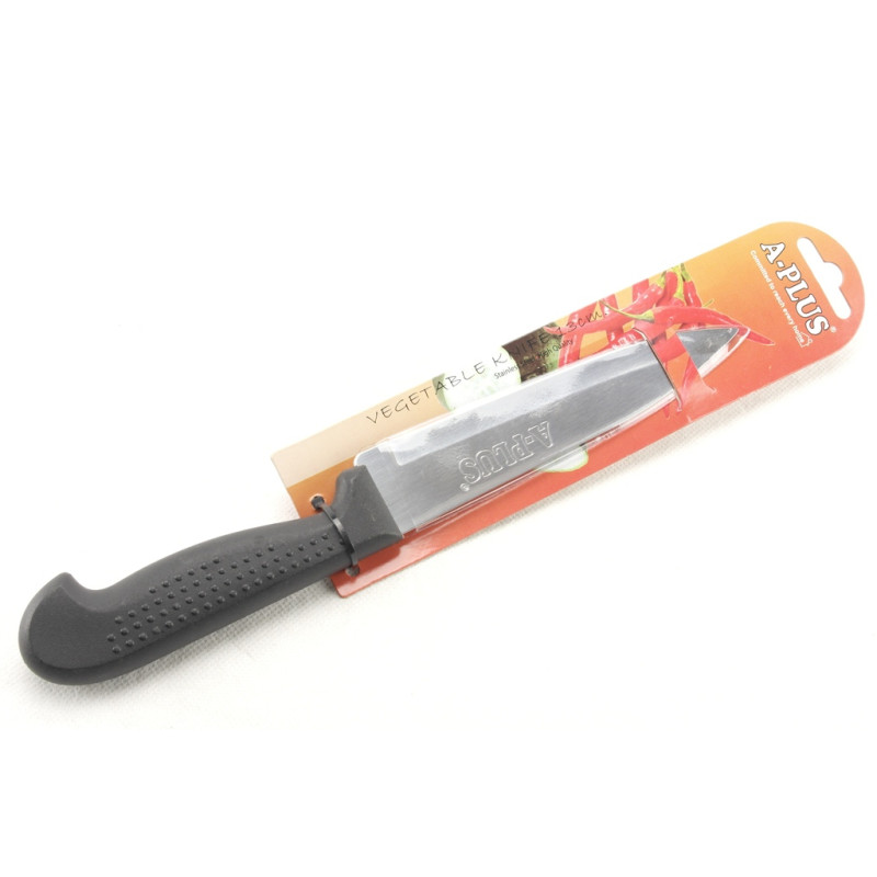 Кухонний ніж необхідний у кожному будинку. Навіть якщо Ви не готуєте самі, нарізати і почистити продукти без ножа неможливо. Пропонуємо ніж із нержавіючої сталі з дерев'яною ручкою, який зробить процес приготування їжі набагато легшим та приємнішим.Довжина леза – 13 см.