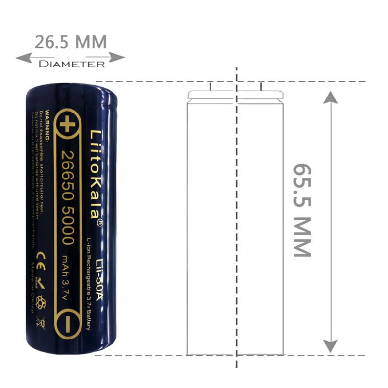 Формат: 26650 (більший, ніж 18650, для високої ємності).