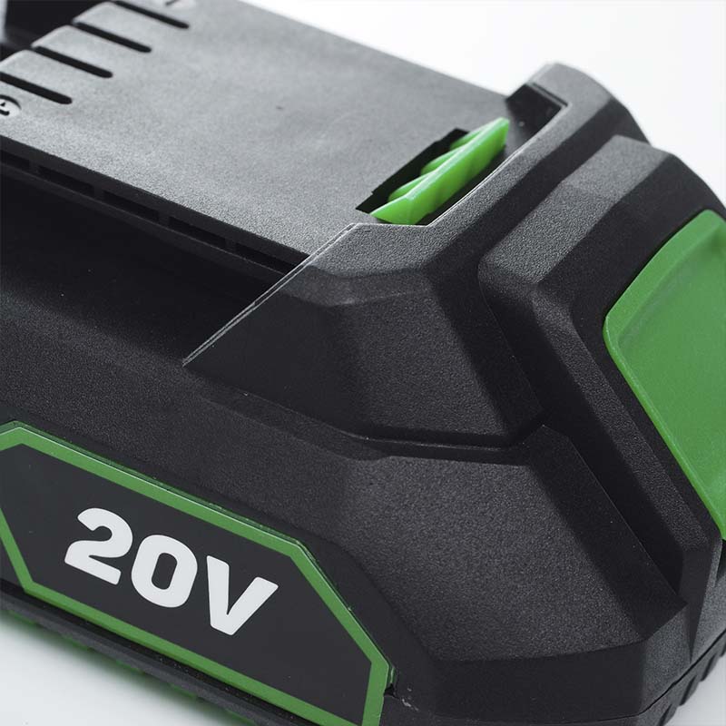Акумуляторна батарея 2020 В являє собою Li-Ion батарею напругою напругою 20 V і ємністю 2 А/год. Основна особливість полягає в тому, що вона повністю сумісна з електроінструментом лінійки Power Е-system.За довговічність і збереження цілісності батареї відповідають прогумовані вставки, що надають захист від падіння, ковзання поверхнею та унеможливлюють вислизання з рук. Також акумуляторна батарея захищена від внутрішніх пошкоджень, оскільки має 4 ступені захисту від: короткого замикання, перезаряджання та перегрівання.