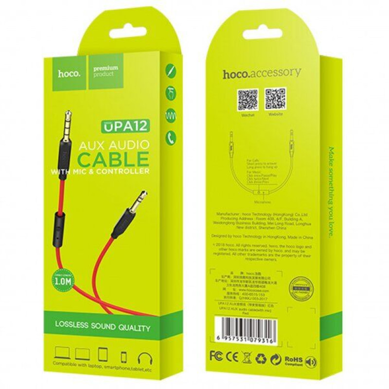 AUX-кабель НОСО UPA12 AUX+Microphone 1m. Red