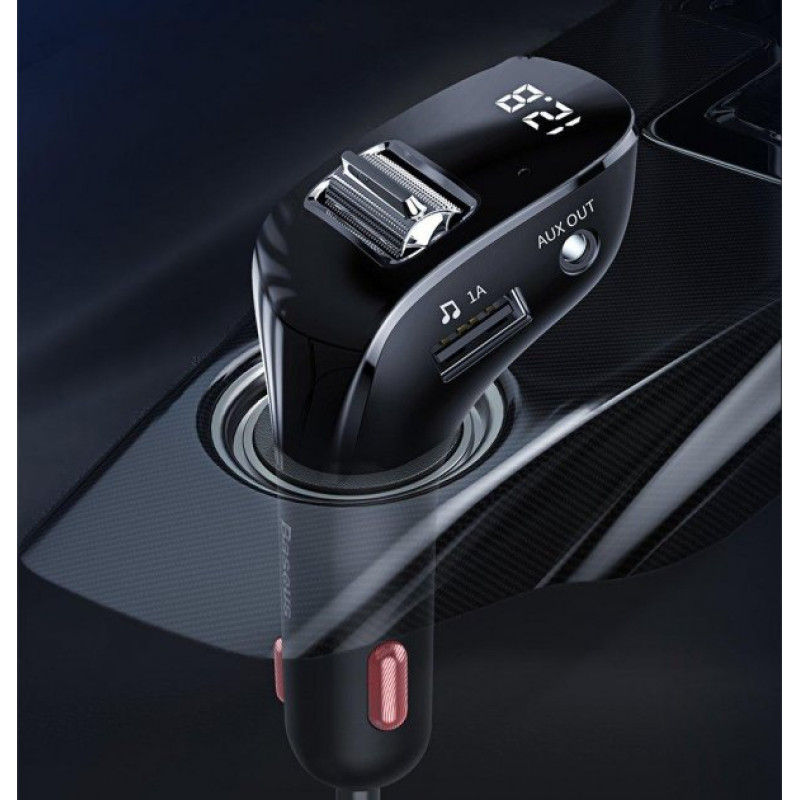 Модулятор Baseus – стильний модулятор із функцією адаптера для заряджання мобільних пристроїв. Особливістю Baseus є можливість відтворення музики з USB-накопичувачів та карт пам'яті Micro SD. Також у пристрої використовується Bluetooth, що дозволяє прослуховувати музику зі смартфона чи планшета. Версія Bluetooth 5.0, функція HandFree, дистанція сигналу до 10 метрів, підтримка флеш-карти об'ємом до 64Gb.У пристрої є функція використовувати динаміки авто як гучний зв'язок, тобто розмовляти по телефону, але при цьому не беручи трубку в руки. Це можливо завдяки присутності мікрофона, що дозволяє розмовляти телефоном за кермом. Зарядний пристрій буде чудовим доповненням до Вашого авто.