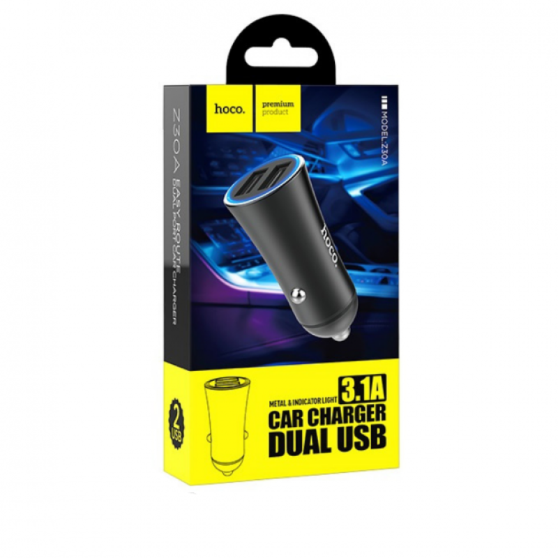 АЗП HOCO Z30A Easy Route 2USB/3,1A/LED Black
