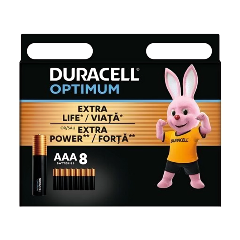 Duracell Optimum AAA (LR03) – це преміальні лужні батареї нового покоління, що забезпечують підвищену продуктивність та збільшений час роботи пристроїв. Підходять для техніки з високим та середнім енергоспоживанням.Характеристики: