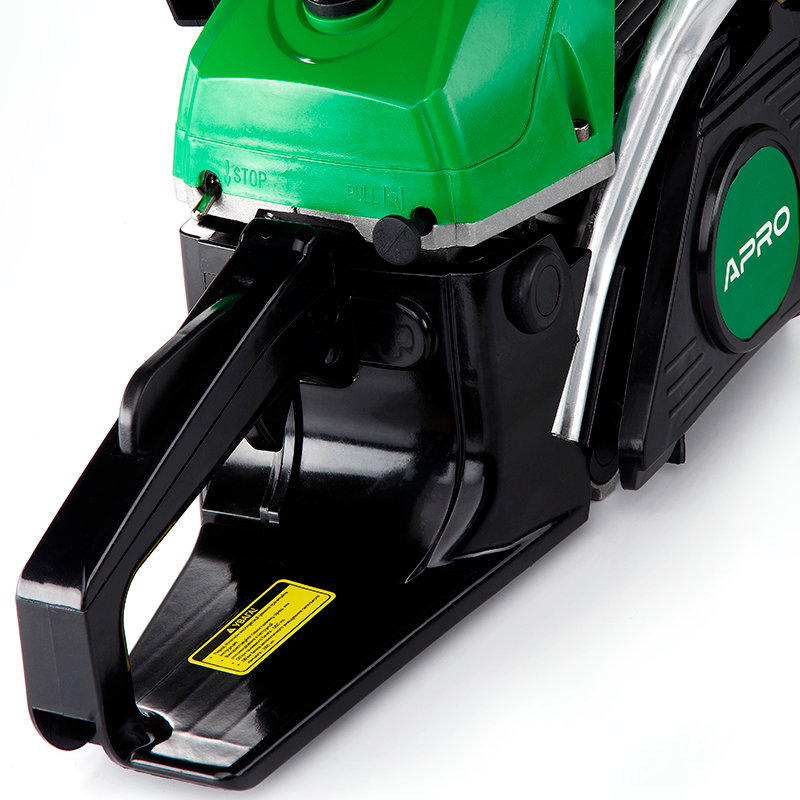 Бензопила APRO – ланцюгова бензопила призначена для розпилювання дерева, обрізки сучків, заготівлі дров у побутових умовах.Бензопила ланцюга підходить для роботи у фермерському чи приватному господарстві. Проста в обслуговуванні: заміна ланцюга та налаштування може бути здійснена самостійно. Ручний стартер полегшує запуск. Пила забезпечена механічним гальмом ланцюга, який зупиняє його рух протягом кількох секунд.