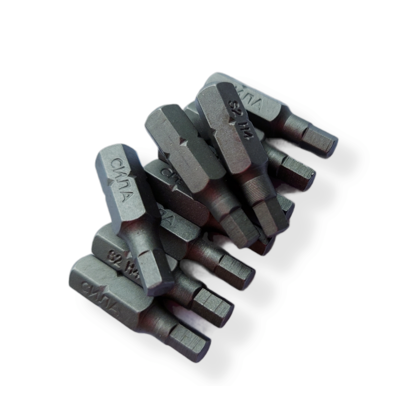 Біти призначені для використання як змінні насадки в механізованому та ручному інструменті. Матеріал: сталь S2.