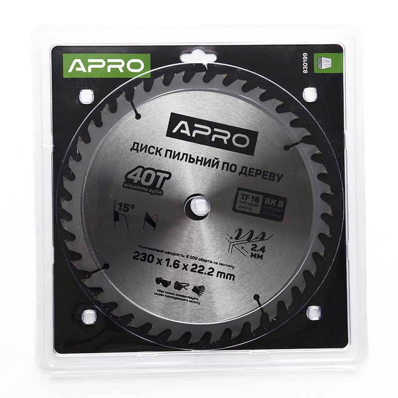 Диск пильний по дереву 230х22,2х40T (APRO)