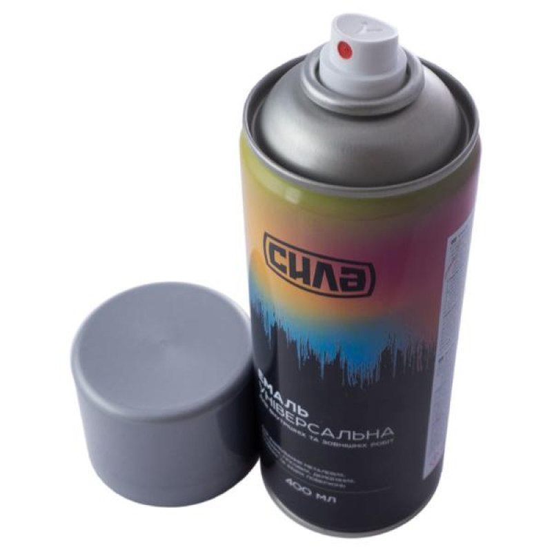 Універсальна емаль СИЛА - аерозольна фарба зі швидким висиханням для фарбування пластикових, дерев'яних, металевих, бетонних, гіпсових, дерев'яних, скляних та інших поверхонь. Зручна для роботи із трафаретами.