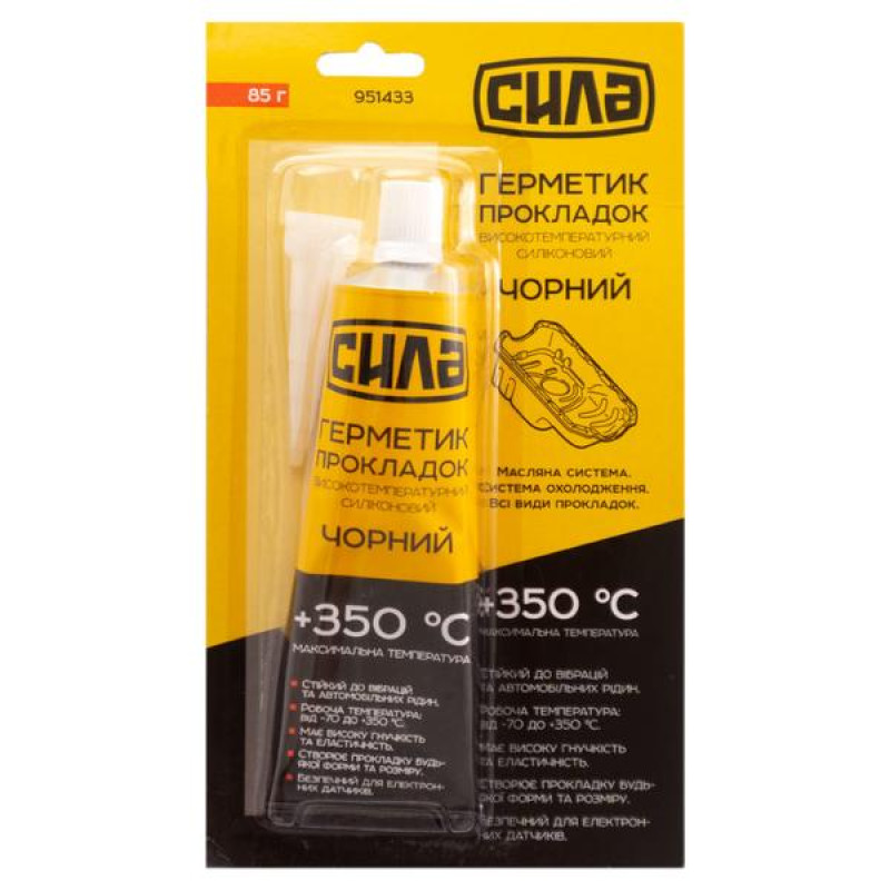 Герметик прокладок високотемпературний + 350 ° С, 100% силіконовий, чорний 85г (СИЛА - Інструмент)