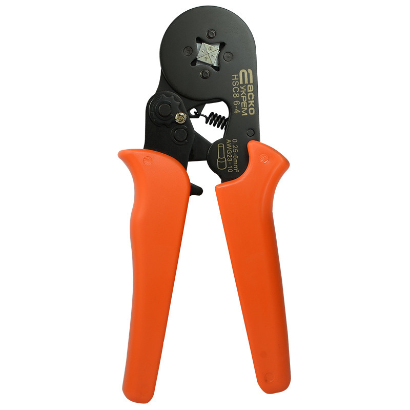 Обтискний інструмент призначений для опресування одинарних та подвійних втулкових наконечників. Одна матриця, що саморегулюється, на всі типорозміри діапазону. Храповий механізм, що гарантує повний цикл опресування.Профіль обтискання: квадрат.