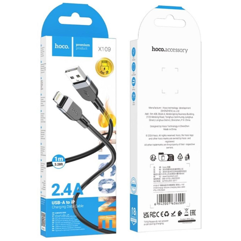 Кабель HOCO X109 Energy Silicone призначений для заряджання та синхронізації пристроїв Apple з роз'ємом Lightning. Виготовлений з м'якого та міцного силікону, який стійкий до згинів та зношування, зберігаючи гнучкість та зручність при щоденному використанні.Характеристики: