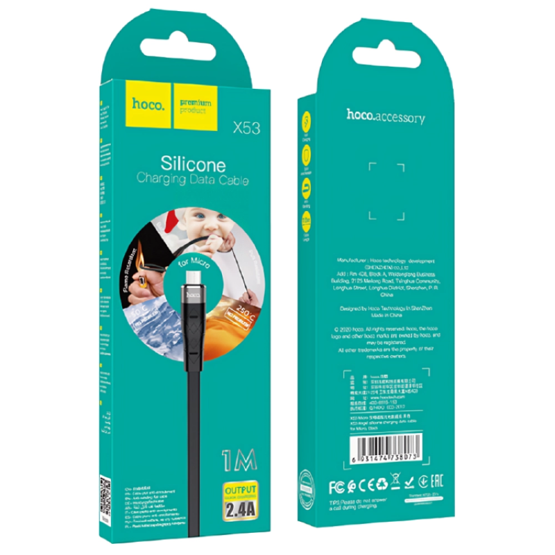 Кабель HOCO X53 Ange silicone charging data for Micro 2,4A/1m. Black