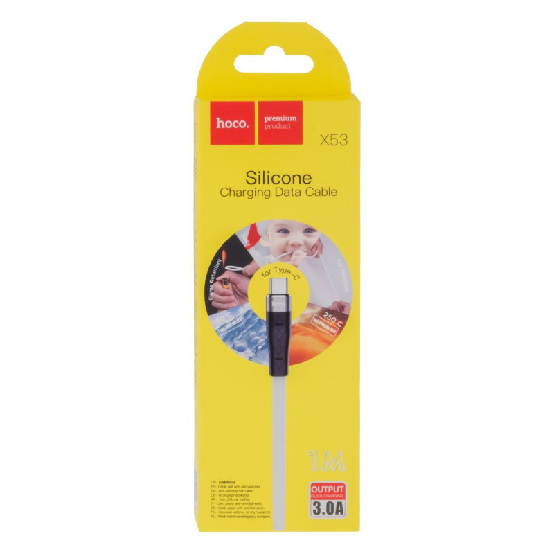 Міцне обплетення виготовлене з абсолютно безпечного для людини харчового силікону, запобігає сплутуванню кабелю, здатне захистити його від більшості можливих пошкоджень. Плоскоовальний переріз кабелю забезпечує його тривалу функціональність. Сердечник із 118 проводів із чистої міді у поєднанні з якісним екрануванням гарантує стабільні струм, напругу та швидкість передачі даних. Максимальна сила струму становить 3А. Довжина кабелю – 1м.
