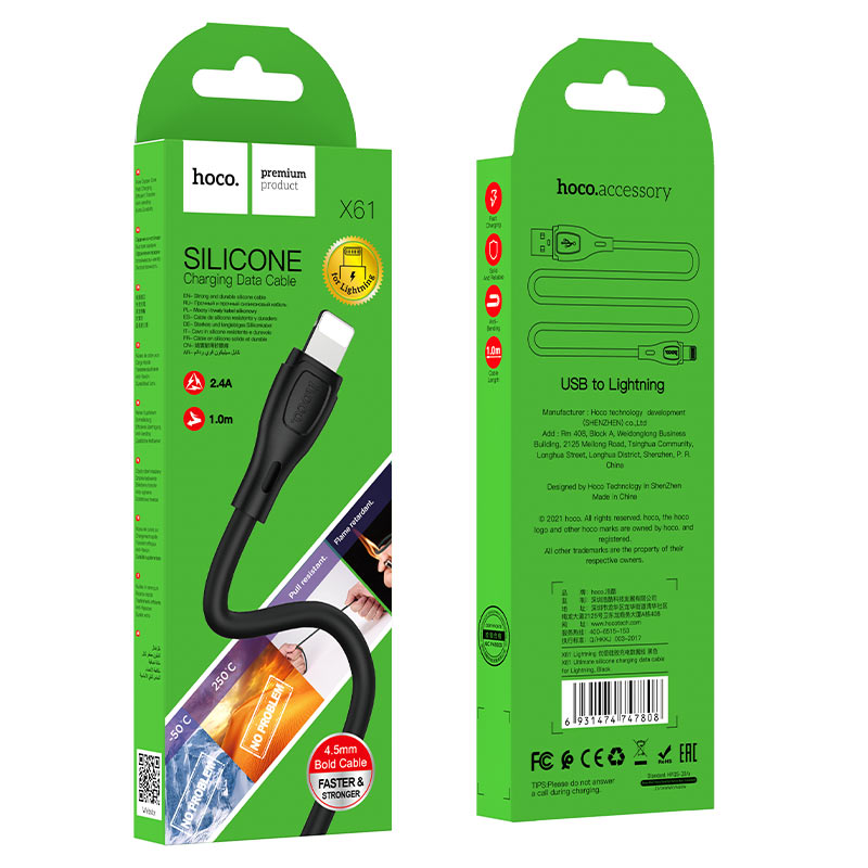 Кабель HOCO X61 Ultimate Silicone розроблений для заряджання та синхронізації пристроїв Apple з роз'ємом Lightning. М'яка силіконова оболонка робить кабель еластичним і приємним на дотик, при цьому він стійкий до перегинів та зносу.Характеристики:
