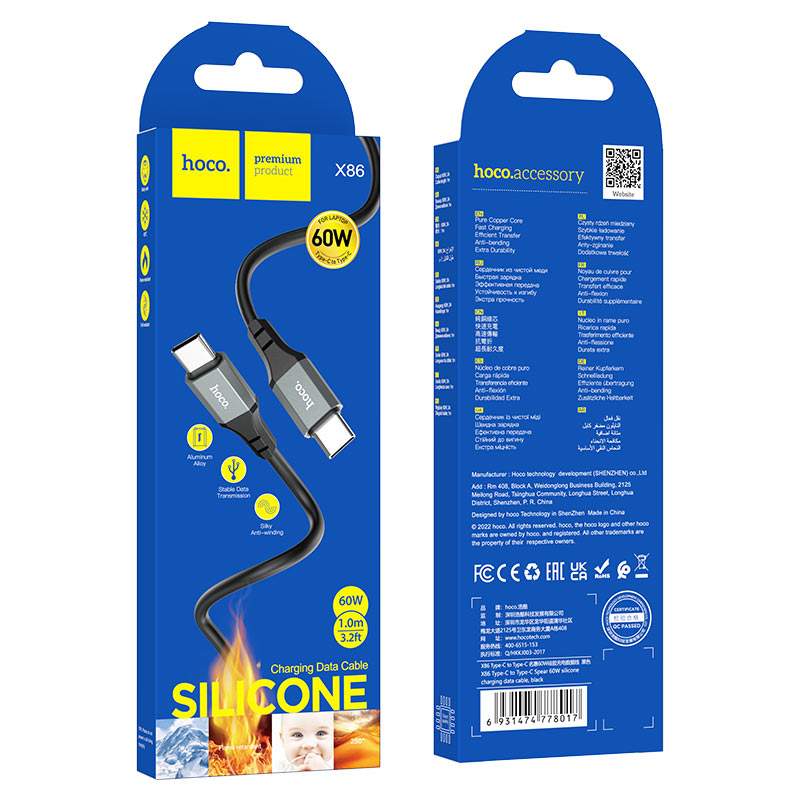 USB кабель Hoco X86 Type-C 3A 1m чудове рішення для заряджання та синхронізації даних ваших гаджетів. Шнур тактильно приємний, виконаний із якісних зносостійких матеріалів. Комфортна довжина кабелю 1m. Кабель USB Hoco X86 дозволяє не тільки заряджати ваші пристрої, а й передавати дані на комп'ютер чи смартфон.