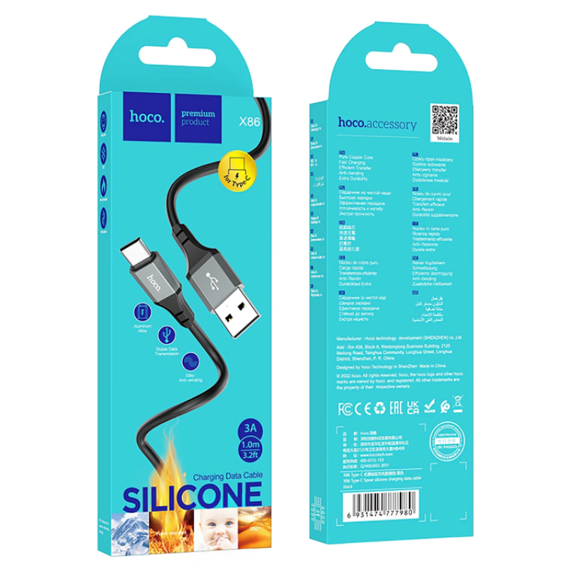USB кабель Hoco X86 Type-C 3A 1m чудове рішення для заряджання та синхронізації даних ваших гаджетів. Шнур тактильно приємний, виконаний із якісних зносостійких матеріалів. Комфортна довжина кабелю 1m. Кабель USB Hoco X86 дозволяє не тільки заряджати ваші пристрої, а й передавати дані на комп'ютер чи смартфон.