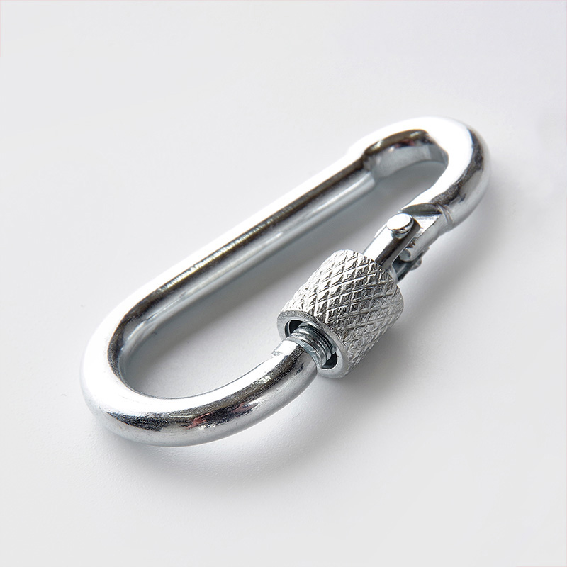 Карабін із замком - універсальний елемент кріплення, для швидкого з'єднання між собою канатів, тросів, ланцюгів та інших елементів систем кріплення.Замок забезпечує надійну фіксацію та оберігає від випадкового розкриття карабіну.