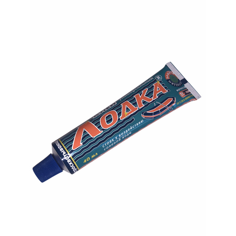 Клей для склеювання не всмоктуючих і погано всмоктуючих поверхонь. Використовується для ремонту човнів. Також, застосовується для склеювання автомобільних і велосипедних камер, плащів, наметів з прогумованої тканини і інших гумових поверхонь, для склеювання шкіри, пластика, дерева, порцеляни, скла, полімерно-синтетичних матеріалів. Водостійкий універсальний клей Човен для ремонту гумових виробів характеризується високою стійкістю до дії вологи і солоної води. Виготовлений з натурального каучуку і органічних розчинників, завдяки чому підвищується його стійкість до вологи і солоної води.