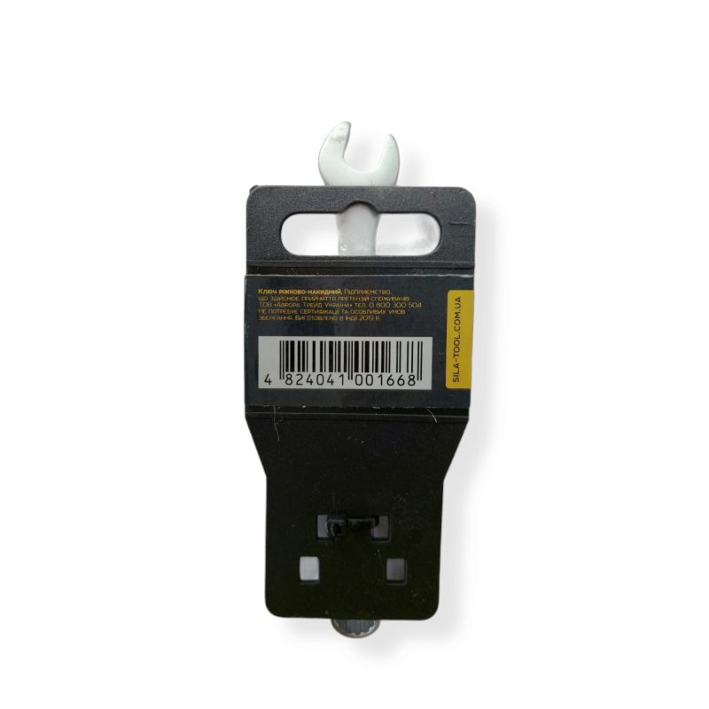 На одному кінці тіла розташований ріжковий ключ, на іншому - накидний. Обидва мають однаковий розмір. Необхідний для закручування або викручування гайок, утримування болтів і інших з'єднань, що має прямокутні грані. Матеріал: хром-ванадієва сталь.