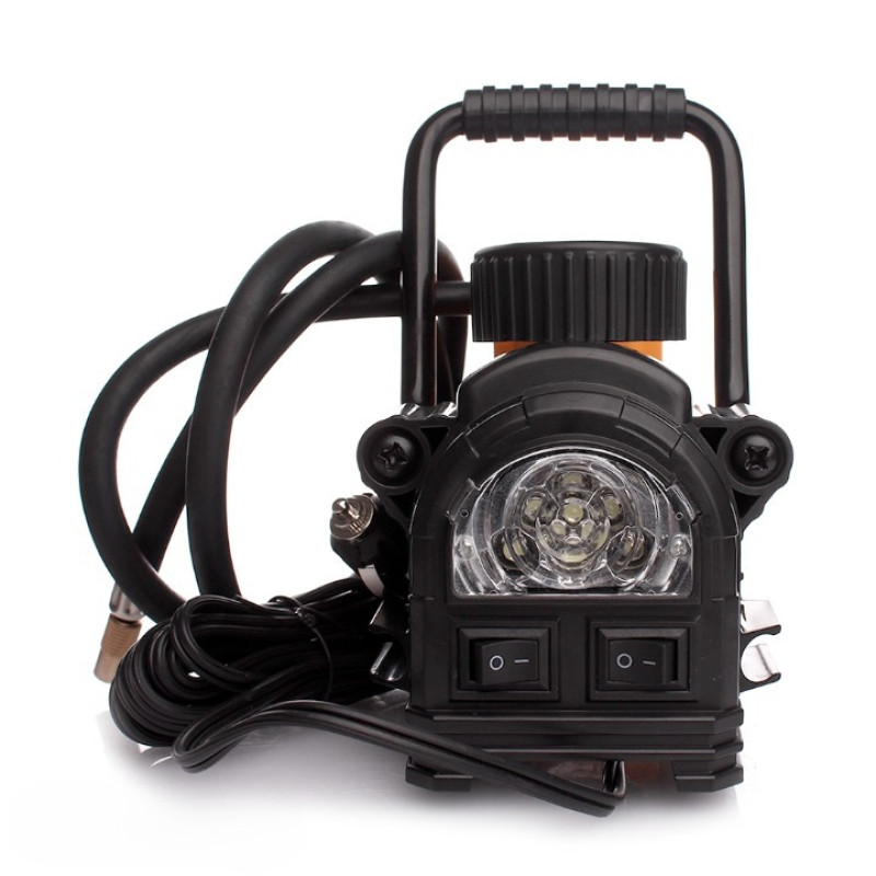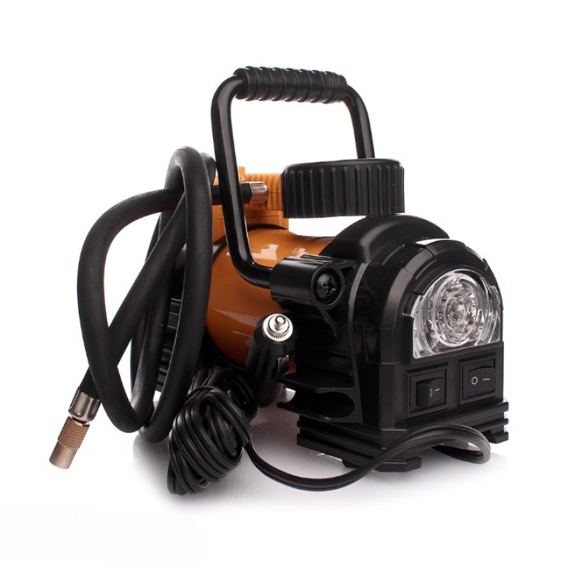 Компресор використовується для накачування шин та контролю тиску в них. Джерелом живлення для даної моделі виступає прикурювач автомобіля, підключення якого відбувається за допомогою стандартного кабелю з відповідним перехідником. У комплектацію входить набір універсальних насадок. Крім шин представленим пристроєм можна накачати повітрям та інші предмети, наприклад, надувне ліжко. Ця модель оснащена ліхтарем.