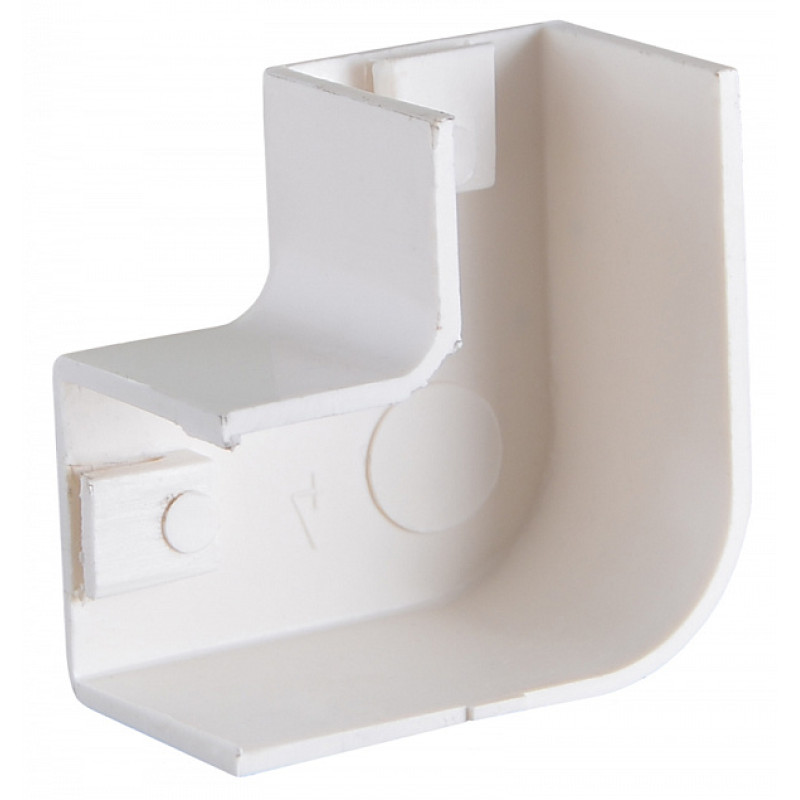 Кут плоский призначений для зручного, щільного і естетичного з'єднання пластикових коробів. Матеріал: ПВХ, що не підтримує горіння.