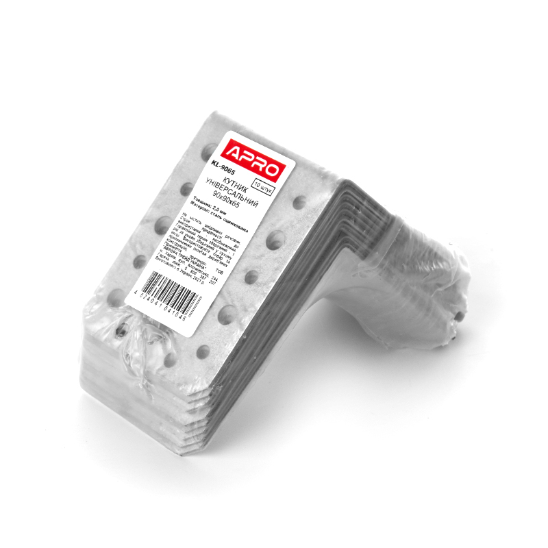 Кутник універсальний 90х50х55х2.0 мм оцинкований (пач. 10 шт.) (APRO)