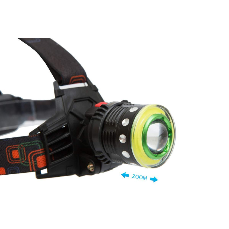 Налобний ліхтар із центральним яскравим світлодіодом та СОВ LED-стрічкою навколо центрального діода відмінно підійде для кемпінгу та туризму, полювання, риболовлі, велопрогулянки, альпінізму. Буде вірним помічником у будь-якому виді діяльності у темний час доби. Час роботи 4 години.У даній моделі корпус виготовлений з металу та міцного пластику, працює на 2-х Li-ion акумуляторах типу 18650. Вологозахищений, протиударний. Має оптичний зум. Заряджається від USB.