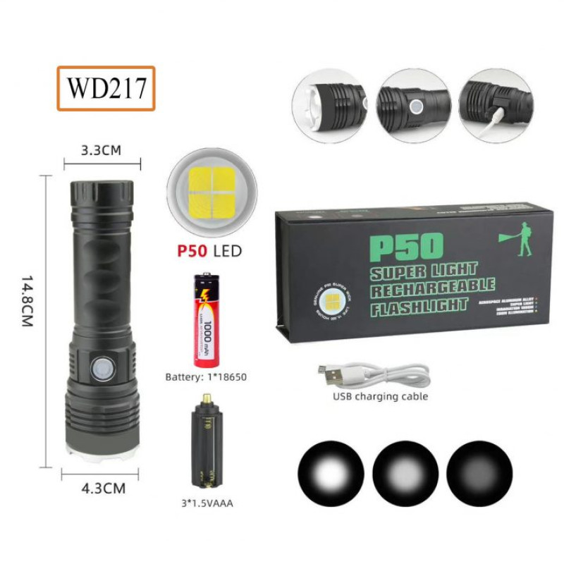 Ліхтар 217 Р50 LED POLICE ZOOM МОНОкріст, 3 режими, кнопка збоку, акк. 18650