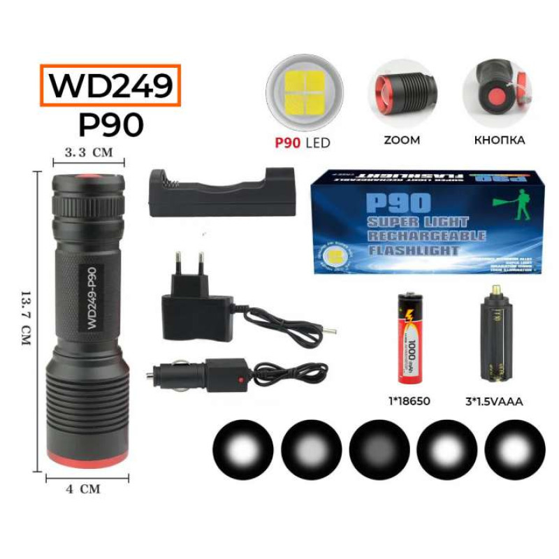 Кишеньковий ліхтар POLICE WD-249 є одним із лідерів серед моделей серії Police. Потужний сучасний світлодіод P90 забезпечує якісний та суперяскравий спрямований промінь світла. Є ZOOM-фокусування променя світла. Кнопка увімкнення на задній кришці корпусу. Металевий корпус.