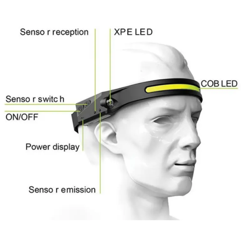 Новинка 2022 індукційний налобний ліхтар нового покоління з датчиком руху – це ідеальний варіант для щоденного носіння у темний час, у побуті, на роботі, для катання, патрулювання, кемпінгу, навчання, полювання, походів, пошуку, нічної риболовлі, нічної їзди.Особливістю даного ліхтаря є включення світла за датчиком руху руки. Надяскраві світлодіоди, мала вага та м'яка регульована гумка роблять його дуже комфортним в експлуатації. Крім стрічок, що світяться, він оснащений бічним ліхтарем далекого світла.