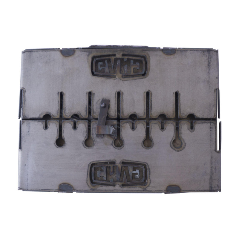 Завдяки ретельно продуманій конструкції мангали складаються у формі валізи, в яку вкладаються шампури, ніжки складаються впритул до корпусу мангала, а сам мангал укладається в зручну сумку.Всі деталі і ніжки мангала склеплені. Мангал виготовлений зі сталі, яка забезпечує стійкість металу до деформації під дією високих температур.