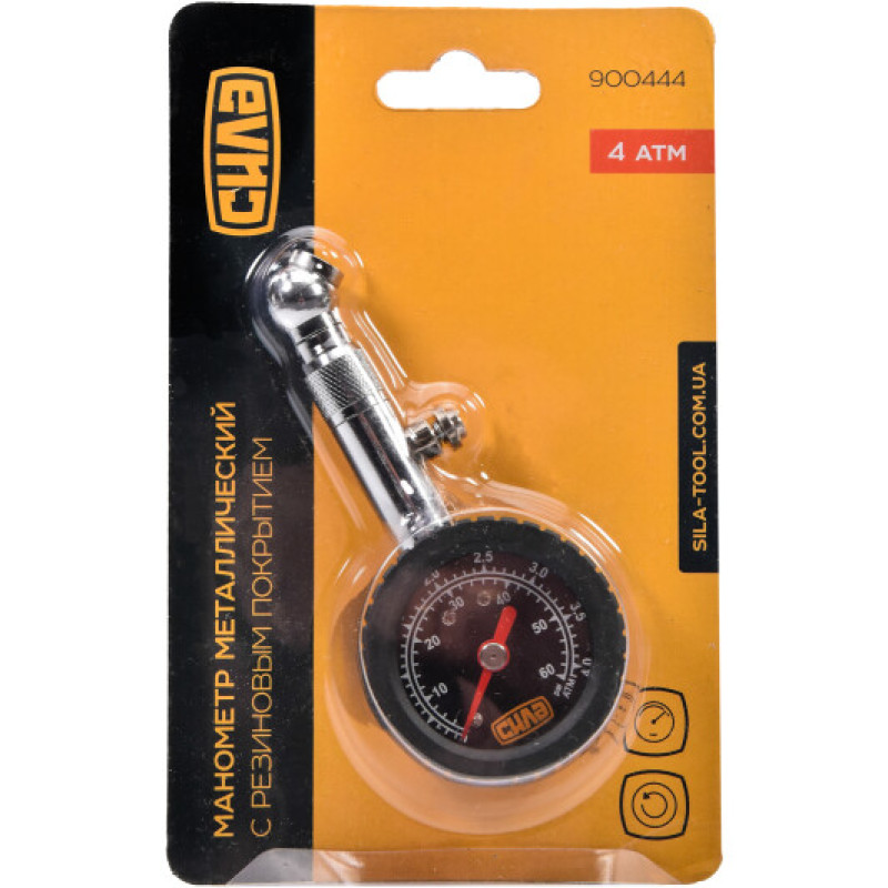 Прилад використовується для вимірювання тиску в автомобільних шинах. Ця модель оснащена зручним аналоговим циферблатом. На корпусі передбачена кнопка скидання тиску, що дозволяє робити необхідну кількість вимірів без необхідності від'єднання приладу. Корпус виготовлений із високоміцного металу із гумовим покриттям.