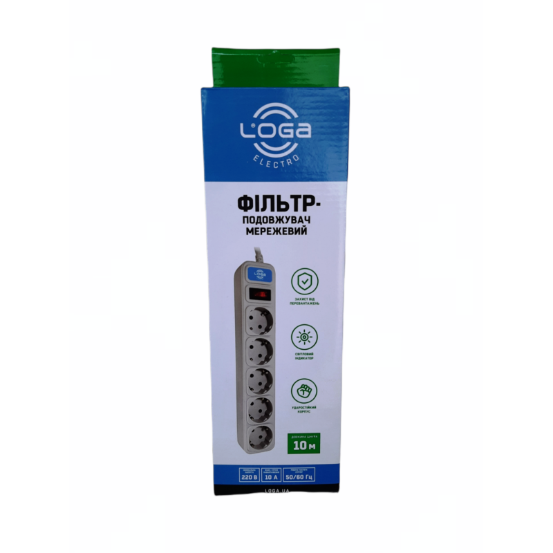Мережевий фільтр 5 гнізд/10м 10A LOGA L-905