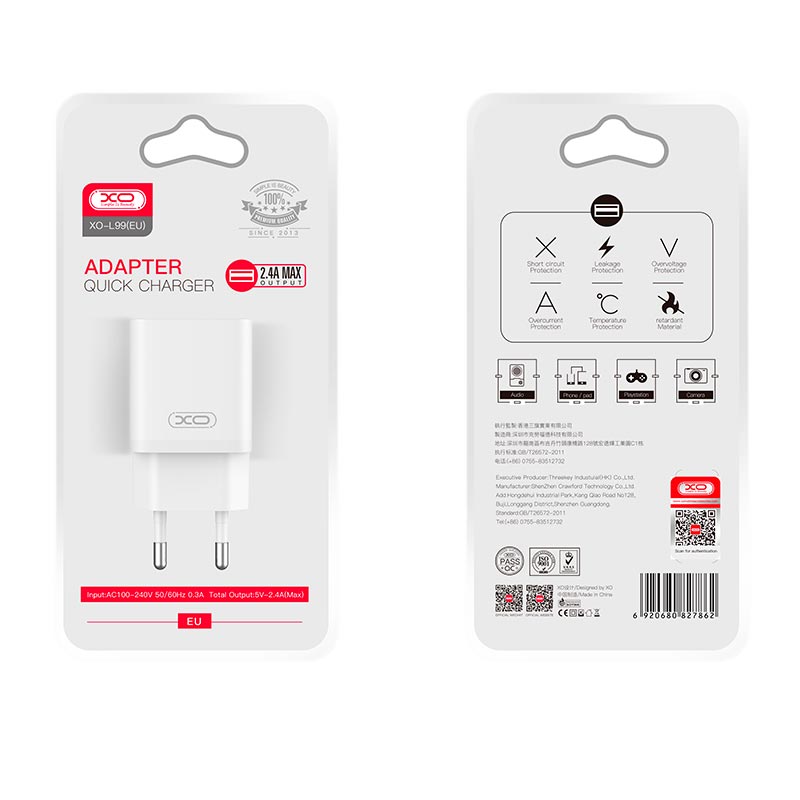 Зарядний пристрій XO L99 2.4a home charger — це мережний адаптер для телефону, для планшета, для Apple AirPods. Пристрій забезпечить необхідну потужність енергії, допоможе максимально довго зберегти працездатність АКБ та заповнення заряду за мінімальний термін. В окремих ситуаціях його можна застосовувати і для інших гаджетів, головне - враховуйте сумісність портів та потужність струму.З джерелом струму точно не виникне проблем, потужність ЗУ XO L99 2.4a home charger складає 12 Вт. Разом із вихідною силою струму це забезпечує максимально швидку зарядку пристрою.