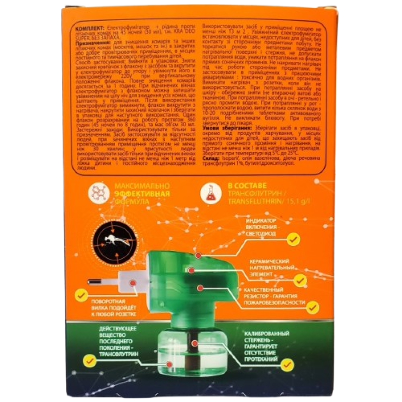 ✓ Час дії: 45 ночей (360 годин безперервної дії), Об'єм 30 мл.