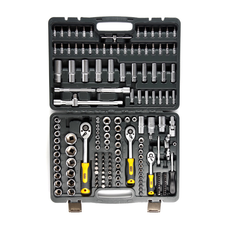 ✓Абсолютна універсальність: Включає повний спектр торцевих головок (стандартні та глибокі), біти, подовжувачі, карданні шарніри, ключі та інші необхідні аксесуари для роботи з будь-якими типами кріплень.