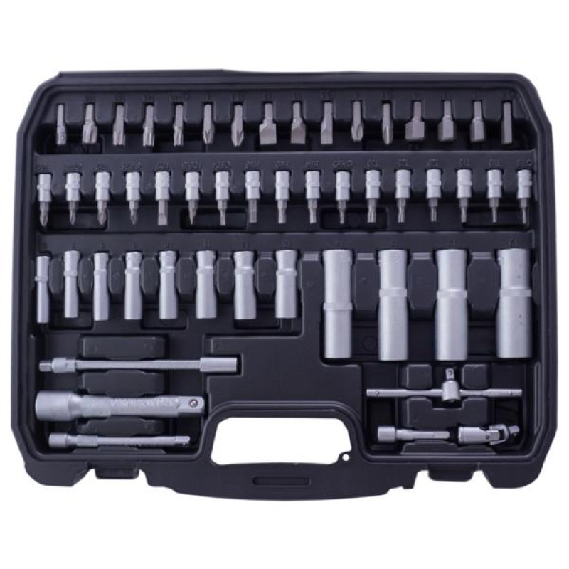 У ньому можна знайти пристрої з двома кріпильними квадратами для ширшого спектру робіт. Для кожного з квадратів є свої тріскачки та коміри, знімні головки та біти, подовжувачі, кардани та інше.