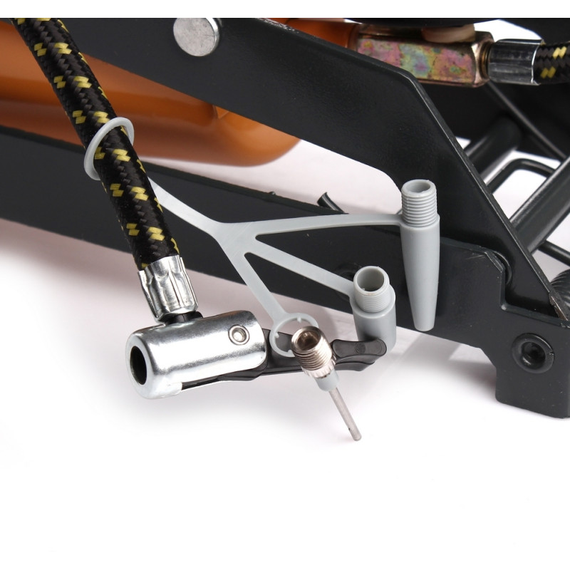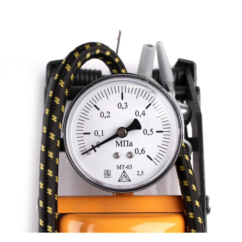 Підсилений ніжний насос використовується для накачування шин і контролю тиску в них. Оснащений швидкозатискним клапаном та одним поршнем. У комплекті є адаптер для автомобільних шин. На корпусі розташований аналоговий манометр.