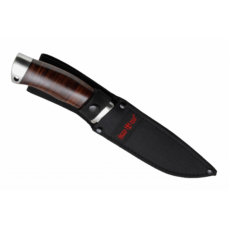 Ніж мисливський Grand Way 2290 LP (шкіра) укомплектований ножни з кордури, які зручні для поясного носіння і зберігання часу, що залишився.