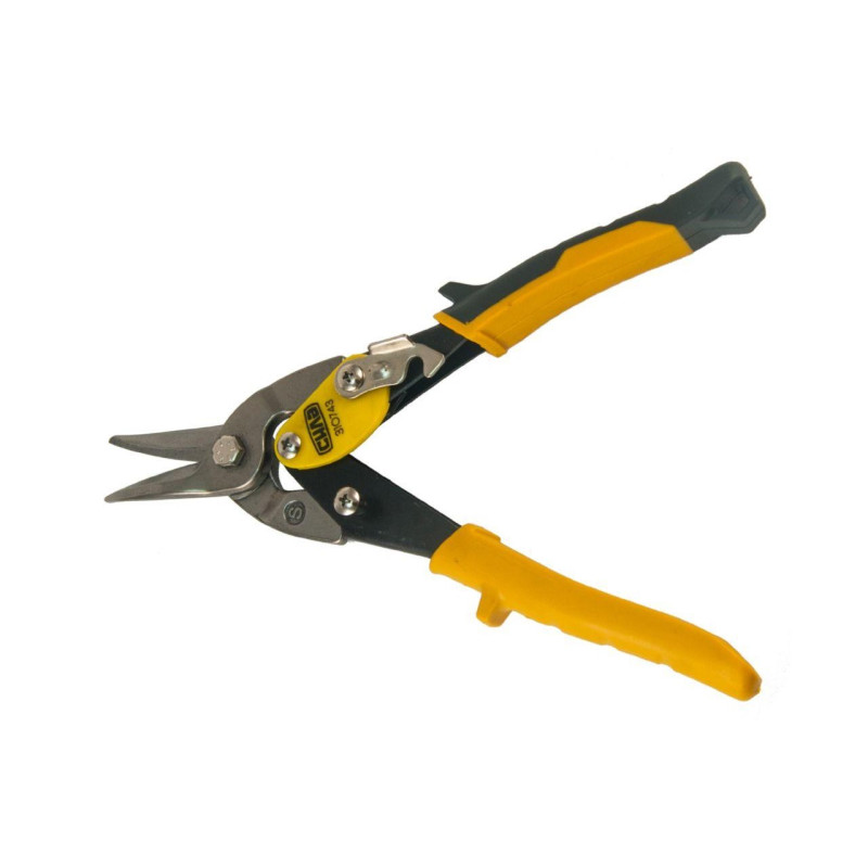 Ручні ножиці по металу використовуються для нарізування алюмінієвого профілю, наприклад, при зведенні каркасів для гіпсокартонних конструкцій, для нарізки профнастилу при покрівельних роботах або монтажі вентиляційних каналів, а також для виготовлення водостоків з листового металу. Часто зустрічається цей інструмент в майстернях при виконанні заготовок із сталевих листів. Ідеальним варіантом вважається при обробці оцинкованої сталі, так як під час різу забезпечується збереження захисного шару цинку. При цьому цинк немов змащується з поверхні листа на зріз, тим самим захищаючи метал від корозії. Прямі ножиці служать для прямих різів. Матеріал: хром-молібденова сталь. Матеріал рукояті: пластик, термопластичная гума.