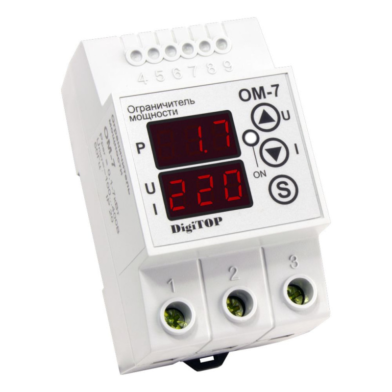 Обмежувач потужності призначений для контролю споживаної потужності в однофазної електричної мережі. Пристрій спрацьовує на перевищення струму навантаження, тому даний пристрій, крім основної функції обмеження споживаної потужності, здійснює захист електропроводки від пошкодження. Допустимі межа потужності, час затримки включення / вимикання і кількість циклів спрацьовування встановлюються користувачем. Прилад оснащений функцією реле напруги. Негорючий, зносостійкий і ударостійкий корпус.