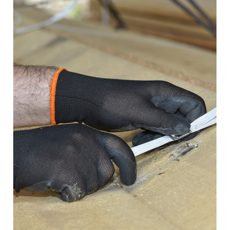 Doloni 4191 - це обливні рукавички з латексним покриттям. Використовуються для роботи зі слизькими поверхнями. Латекс має властивість добре спінюватися, чим створює рельєфну структуру на рукавиці для запобігання ковзанню. Еластичний, тому рукавиці міцні і немає скутості рухів. Спеціальний манжет перешкоджає попаданню дрібного сміття всередину, тим самим захищає кисть. Використовуються як рукавички для бензопили, для роботи з болгаркою. Часто такі рукавички називають - рукавички муляра або рукавички скляра.!Латекс руйнується при взаємодії з тваринами, рослинними жирами та мастилами!