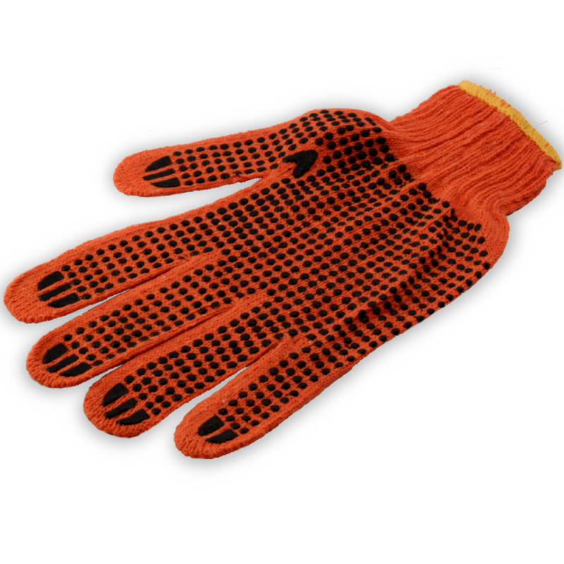 Рукавички виконані із трикотажу з точковим покриттям із ПВХ. Використовуються в садово-городніх, будівельно-ремонтних, вантажно-монтажних та господарсько-побутових роботах. Забезпечують захист рук та надійне захоплення предметів.Рукавички оснащені еластичними манжетами, які м'яко прилягають до кисті та запобігають попаданню побутового та будівельного сміття всередину рукавичок. Завдяки х/б основі забезпечується вільний повітрообмін.