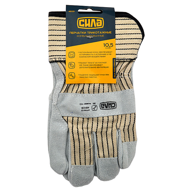 Рукавички комбіновані трикотаж+замша для захисту рук від механічних впливів під час проведення важких робіт.Надійно захищають руки під час важких робіт. Висока стійкість до стирання.