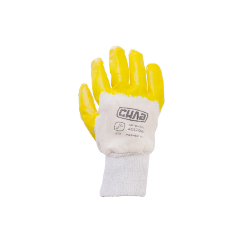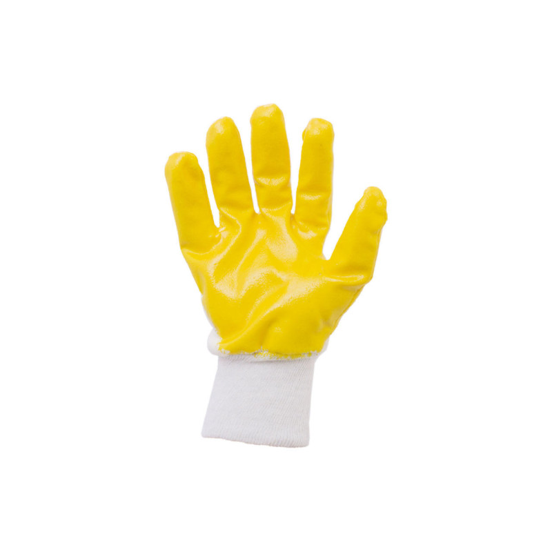 Перчатки анатомічної форми з еластичною манжетою на зап'ясті з бавовняного трикотажу з нітриловим покриттям жовтого кольору.Область долоней і пальців, покриті нітрилом, що забезпечує високу масло-бензостойкость і еластичність. Бавовняна основа вбирає вологу і підвищує комфорт. Трикотажний манжет додатково фіксує рукавичку на руці, захищає від попадання пилу і бруду. Відмінна зносостійкість. Винятковий комфорт завдяки текстильній основі. Висока якість текстильної основи і нітрилового покриття.