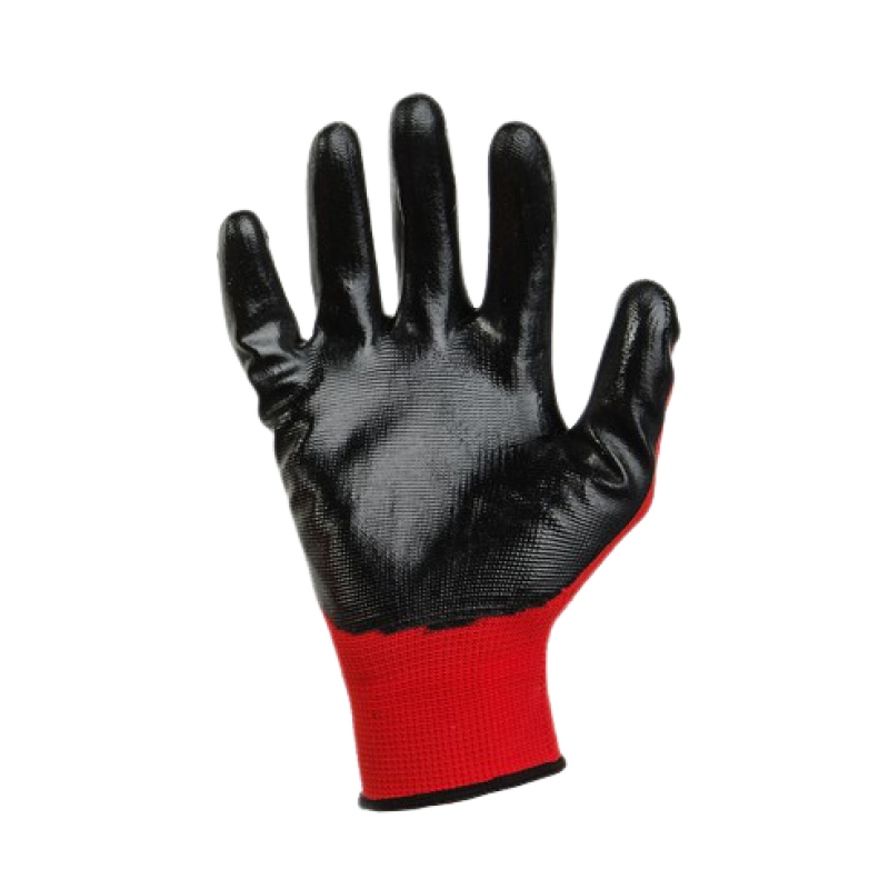 Перчатки з нітриловим покриттям на трикотажній основі маслобензостійкі з високою ізностійкістью. застосовуються для складських, сільськогосподарських, складальних робіт, в автосервісі, механічних, будівельних роботах. Нейлонове волокно не подразнює шкіру рук, поверхня пальців і долонна частина перчатки покрита тонким шаром міцного нітрілу, який підвищує зносостійкість виробів, і зберігає високу чутливість пальців. Перчатки забезпечують відмінний захист для рук від механічних пошкоджень.Матеріал: трикотаж.